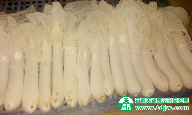 竹荪是寄生在枯竹根部的一种隐花菌类,形状略似网状干白蛇皮,它有深绿色的菌帽,雪白色的圆柱状的菌柄,粉红色的蛋形菌托,在菌柄顶端有一围细致洁白的网状裙从菌盖向下铺开,被人们称为“雪裙仙子”、“山珍之花”、“真菌之花”、“菌中皇后”。竹荪营养丰富,据测定干竹荪中含蛋白质19.4%、脂肪2.6%,碳水化合物总量60.4%,其中菌糖4.2%、粗纤维8.4%,灰分9.3%,香味浓郁,滋味鲜美,自古就列为“草八珍”之一,历史上列为“宫廷贡品”。其对高血压、神经衰弱、肠胃疾病等具有保健作用。还具有特异的防腐功能,夏日加入竹荪烹调的菜、肉多日不变馊。