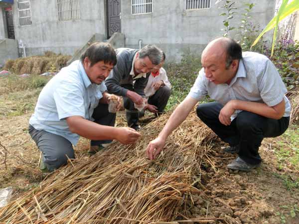 丁伦保教授在残疾人姚增华家指导幸福菇栽培