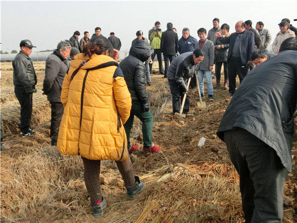 丁伦保总经理正在指导肥西县残疾人露天大田栽培幸福菇技术