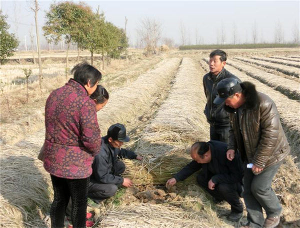 2015年1月20日,安徽天都灵芝制品公司丁伦保董事长,技术员许洋来到肥西县丰乐镇肖家桥唐光保、徐玉林、吴玉成等农户家指导幸福菇栽培技术。肥西县丰乐镇肖家桥村总计栽培幸福菇面积45亩,现有6户栽培,2014年消化秸秆50万斤,预计产生经济效益15-20万元。