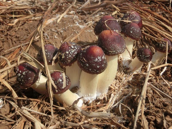 露天大田栽培幸福菇出菇现场