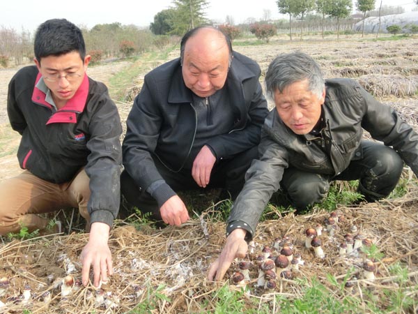 丁伦保总经理指导种植户露天大田栽培幸福菇新技术