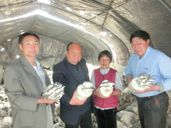 以上图为丁伦保教授在长丰县下塘镇残疾人家指导食用菌生产