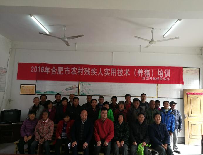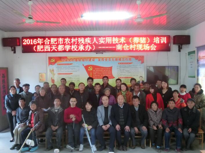 2016年11月10-14日,肥西天都园艺职业培训学校在合肥市经济技术开发区高刘镇举办养猪培训班。此项技术培训是根据《2016年合肥市农村贫困残疾人实用技术和残疾人青壮年文盲扫盲》行动工作通知精神,学校受合肥市经开区社区管理局委托,由高刘镇组织养猪合作社残疾人社员参加培训,培训分别在高刘镇洪店村、南仓村、红塘村举办,培训人数共157人。学校聘请养猪专家、安徽康地新技术有限公司技术总监李少海讲课,李少海教授从“抓基层、重细节、强管理、精饲养”四个方面讲述家庭小规模养猪技术,所讲内容切合养猪实际,通俗易懂,培训结束后,进行测试,合格后并发放结业证书。这期培训得到市残联、区管理局、高刘镇大力支持。市残联就业中心副主任房科文、管理局副局长丁子兵、陈明、高刘镇民政事务科副科长许有林等领导亲临培训现场指导。天都培训学校丁伦保校长对来参加培训的学员也提出具体要求,并强调,此期培训是残疾人养猪技术提升培训,要求学员认真听讲,遵守培训纪律,他说:培训仅是开端,关键是要搞好培训后养猪户的技术跟踪指导、饲料、信息、销售等服务,从而达到养猪技术水平的提升,养猪规模的扩大,效益成倍增长的目的。