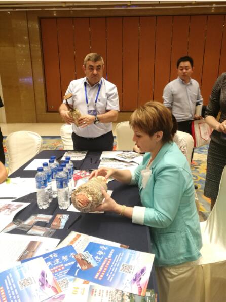 2017年5月17日,安徽天都灵芝制品公司为积极响应和参与国家“一带一路”战略,深化安徽省与俄罗斯伏尔加河沿岸联邦区域的经贸领域及技术合作,通过安徽省农委、省外办推荐与引进,天都公司将食用菌生产先进技术推进俄罗斯奥伦堡州、巴什科尔托斯坦和国等州。在俄罗斯建立天都公司食用菌生产示范基地,就有关合作事宜在合肥市丰大国际酒店进行深入交流与洽谈,天都公司董事长丁伦保一边给客人介绍天都公司在俄罗斯发展食用菌合作方案;一边将公司部分产品向客人进行展示,奥伦堡州经济发展贸易部维克多洛夫娜说:食用菌产品好,俄罗斯欠缺这方面先进生产技术,欢迎丁伦保先生到奥伦堡州考察,把先进技术带到俄罗斯,在此建立食用菌生产发展中心,以点带面,逐步推行,我们做好全程服务。丁伦保答应俄罗斯客人邀请,计划在8月份去俄罗斯奥伦堡州等地实际考察,进一步洽谈,并签订合作协议。