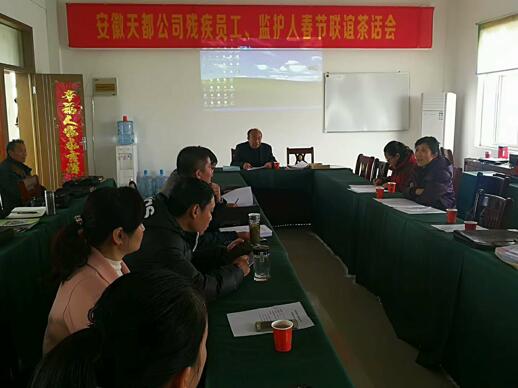 2018年3月22日合肥市残联、人社局、财政局、民政局等组成专家组在肥西县残联领导陪同下到安徽天都灵芝制品公司现场考评残疾人辅助性就业工作,专家们实际观看残疾员工工作、生活、康复、医务室、活动室等,和残疾人员工亲切交流,查看公司残疾人就业相关资料和工资发放卡。天都公司负责人就残疾人辅助性就业工作进行汇报,还提出一些建议。专家组们对天都公司残疾人辅助性就业所做的工作给予充分肯定。