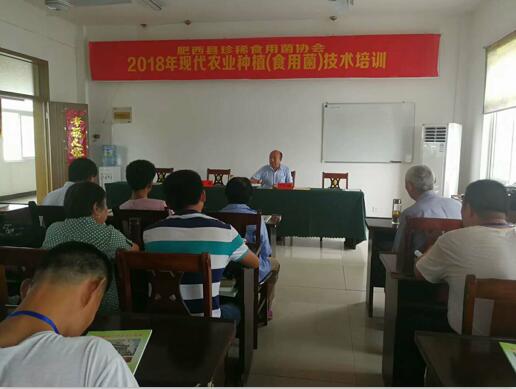 2018年6月30日在全国同庆建党97周年的大喜日子,肥西县珍稀食用菌协会在肥西县花岗镇举办现代农业种植(食用菌)栽培技术培训,此期培训举办得到了市县科协的大力支持,肥西县科协主席江越、副主席胡逢华对现代种植技术培训高度重视和关心,亲自到培训现场指导,江越主席在开班前,给参加培训的学员们讲述了现代农业种植技术培训的重要性,还阐述农技协主要工作,对珍稀食用菌协会近年来与前沿技术对接、精准扶贫、技能培训、为会员服务等所做的工作给予了肯定,对前来参加培训的学员也提出了要求和希望,对协会今后的工作也指明了发展方向。本期培训班学员来自花岗镇及周边乡镇的部分特困户、残疾人、已在种植蘑菇生产大户、养猪养鸡户准备改发展食用菌生产等,总计参加培训人员68人。培训采取专家上课、观看视频、种植户介绍经验、生产现场讲解、实践操作相结合的形式,集中培训3天,培训后,协会要组织人员对特困户、残疾户进行深户技术跟踪指导,提供菌种,上门服务,帮助特困户,残疾户发展食用菌栽培,为家庭增收,脱贫。