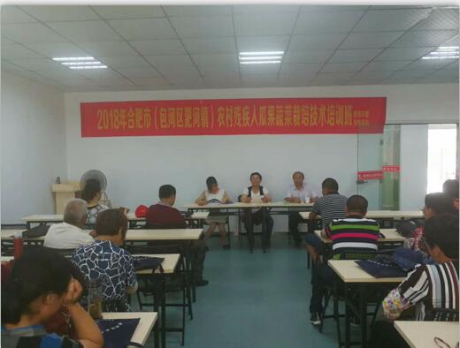 2018年6月26一7月2日肥西天都园艺职业培训学校在合肥包河区淝河镇举办残疾人创业就业技能(瓜果蔬菜)种植技术培训,学员来自全镇有创业就业愿望,准备创业和在创业的残疾人,参加培训有57人,本期培训举办得到市区镇残联大力支持,学员在培训期间不仅能认真听教授讲课,还带着需多问题向教授请教,学习态度端正,结业测试基本上都得满分,参加培训人都纷纷表示,培训学好技木,积极准备创业。