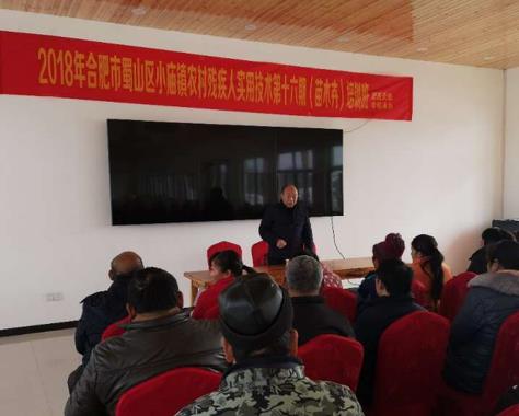 2018年12月25一31日肥西天都园艺职业学校在合肥市蜀山区小庙枣林农业示范园举办农村残疾人实用(苗木花卉)栽培技术培训。在培训期间基本上天天下雨雪,温度较低,零下2一3度,学员们没有被这个天气所影响,反而学习积极性更高,参加培训46名残疾人学员,每天都能按时上课,没有人缺席,特别是31日早上路上冰结得厚又滑,难走,学员克服种种困难,都早早赶到教室等待老师上课,这种学习的精神非常可敬可佩,授课教授被感动得热泪盈眶,连连称赞,残疾人真了不起,我一定要好好教他们、帮扶他们。从小庙残疾人培训中,充分说明我们残疾人对学习实用技术迫切要求,他们是想创业主要缺少引导和技能。天都学校在小庙开展培训内容得到残疾人学员认可,所请专家讲话使他们能听懂,学得会。培训结束后经测试,80%成绩都在90分以上,全部合格,都拿毕业证。很多学员当面表态,学会技术,我就去创业增收,我有了收益,就不要低保。本期培训,蜀山区残联、小庙党委政府都高度重视,区残联就业所王浩所长、镇残联李广定理事长放弃节日休息亲临现场指导,并要求学员抓住机会学好本领创业增收,改变生活质量。才使培训班得到成效、平安而圆满。这期培训也是天都学校2018年最后一期培训。