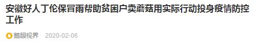 2月6日,安徽好人、“蘑菇大王”丁伦保冒雨将肥西县花岗镇新建社区贫困户周迎春蘑菇,送到合肥经开区御景前城小区囗,用实际行动积极践行扶危济困与服务菜篮子理念,使居民在家门口就能吃到新鲜而营养丰富的蘑菇。