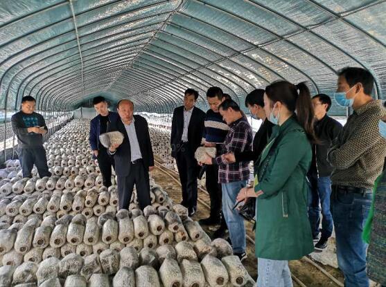 2020年4月25日霍邱县扈胡镇镇长徐守松带领本镇桃花贫困村扶贫队长吴明月、村两委、农户代表到肥西县安徽天都灵芝制品公司调研扶贫,请“蘑菇大王”丁伦保讲叙精准扶贫、扶残助残的故事,现场给两委培训食用菌栽培技术。 徐守松等一行首先观摩天都公司残疾人员工创新生产的盆景蘑菇,为民服务科技阅读室,食用菌菌种培育,公司荣誉墙等,深入大棚边看,边听丁伦保教授讲解平菇、秀珍菇栽培技术和扶贫故事,面对面进行食用菌产业扶贫交流和沟通。丁伦保说,今年是全面建成小康社会和“十三五”规划收官之年,也是脱贫攻坚决战决胜之年。你们以实际行动来落实,真正做到项目,科技,专家联动,为贫困户增收脱贫精准再精准,干得好,干得实。食用菌栽培发展是贫困村产业扶贫首选,它的特点:上马快,见效快,效益高,市场好。近日,习近平总书记在陕西柞水县金米村考察时指出,小木耳,大产业,为食用菌产业扶贫发展指明方向,食用菌栽培在扶贫上会发挥更大作用,给千千万万农民带来更多财富。霍邱县扈胡镇有丰富农作物秸秆,环境优美,更有食用菌种植基础,稍加完善就能成扶贫好产业,大产业,我认为,有镇党委关心,村两委齐心协力,天都公司技术支持,走“合作社十基地十贫困户”运营模式,很抓带头人,培养技术骨干队伍,很快食用菌生产成为全镇扶贫产业亮点,农民增收支柱。徐守松镇长听后说,通过看,听了教授讲解和培训,使我大开视野,信心满满,尽快落实,当作今年一件大事来干,村两委要带头干,树榜样。来学习全体人员一致表态,回去就干,真诚邀请丁伦保教授去桃花指导,丁伦保高兴得应,随叫随到,永做桃花村食用菌产业发展知心人,技术人。 潜山龙潭乡白寨贫困村书记叶素也参加调研和培训,他计划自己带头干,请丁教授做技术顾问,到村里办培训班,逐步引导贫困户干,在全面掌握好技术的同时,创建扶贫产业,稳步发展。