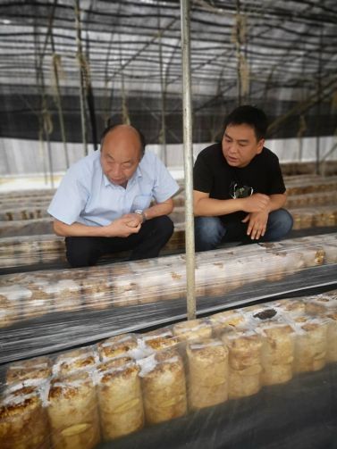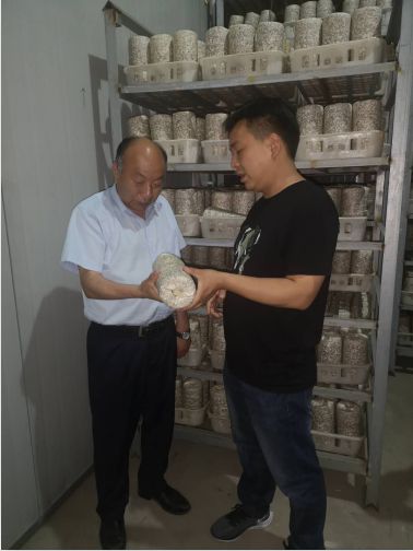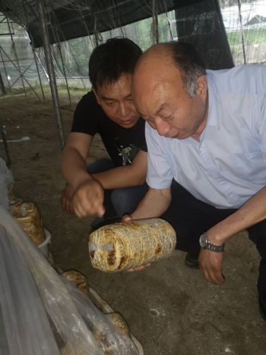 2020年5月24日安徽天都灵芝制品公司董事长、科技特派员丁伦保带领肥西县山南镇金牛社区书记韦佳、肥西县春红食用菌种植专业合作社理事长卫志德等一行赴岳西县来榜镇关河村思远生态农业公司调研利用废弃桑枝栽培木耳。丁伦保等一行在思远公司总经理吴松青陪同下,观摩桑树枝粉碎加工、液体菌种制作、桑黄、木耳栽培现场后,同共探讨桑枝木耳发展前景,合作相关事宜,吴松青介绍思远公司在利用桑枝栽培木耳帮助贫困户增收运营模式、取得成效及下一步发展计划。丁伦保听后给予点赞,并说,思远模式很好,接地气,值得金牛社区、春红合作社借助,在基础上再创新,走一条山南桑枝利用发展新途经,和思远公司加强合作,把山南镇桑枝木耳、桑黄发展好,带动桑农增收,促进金牛社区经济发展,特别是桑黄种植,发展好是一本万利。山南环境、气候、资源都具有优势,春红合作社已有种植平菇、木耳基础,稍加改进,很快建成桑技木耳、桑黄栽培示范基地,形成规模,成为肥西桑枝综合利用亮点。韦佳书记表示,今天到思远公司来,所看所闻,使我大开视野,桑枝木耳栽培前景无限,一定把桑技木耳栽培当作农民致富之柱产业来做,以丁教授技术为依托,春红合作社为平台、思远公司为支撑,把蚕桑产业链做长,引深,带动更多人创业就业,富民强村。着手制定发展方案,做到常期规划,分步实施,今年打基础,明年大发展。
