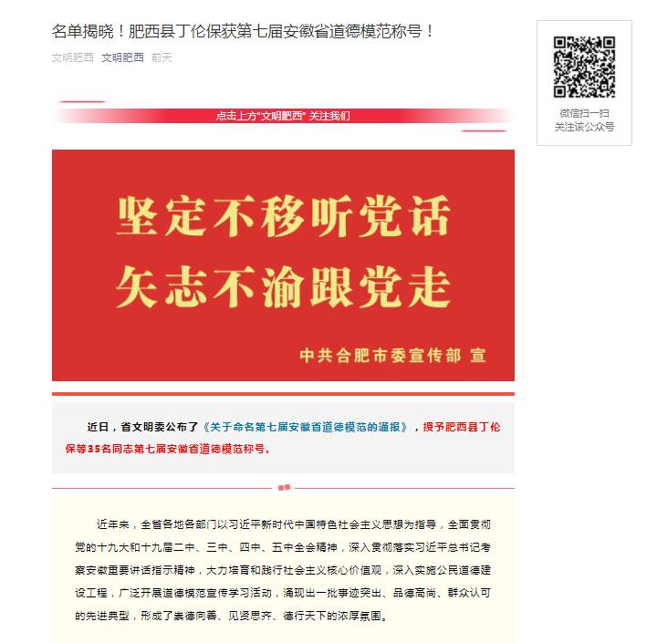 名单揭晓!肥西县丁伦保获第七届安徽省道德模范称号