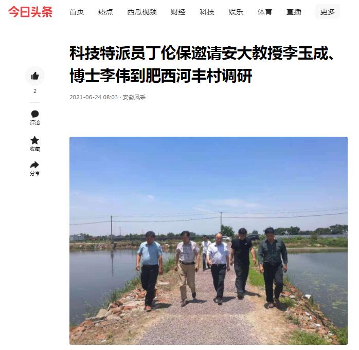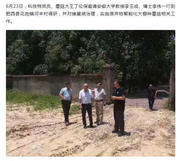 科技特派员丁伦保邀请安大教授李玉成、博士李伟到肥西河丰村调研