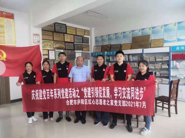 2021年7月5日合肥市庐阳区红心志愿者之家党支部书记洪云子带着党员到肥西县珍稀食用菌协会和协会党支部结队,开展“一心向党、一意为民,扶残助残,做公德、献爱心”等项活动。 丁伦保书记说,正当举国上下庆祝建党100周年、学习习总书记讲话精神之时,合肥市庐阳区红心志愿者之家党支部以实际行动践行,好样子。珍稀食用菌协会党支部始终树立“四个意识”,坚持“四个自信”、“两个维护”。充分发挥党员模范、先锋作用,在科学技术推广运用,乡村振兴,产业发展上发力,树立一个党员,一面旗帜,展示党员在协会的形象,激励更多会员爱热党,加入党组织,和党一起成长。在丁伦保陪同下,党员们观摩残疾人辅助性就业车间、观看通过技术帮助,使贫困户、残疾人发展产业增收脱贫视频,见证协会党员跟党走、听党话,一心一意为菇农服务所做所为。活动结束后,洪云子书记和党员积极购买扶贫、助残“蘑菇大王丁伦保酱蘑菇产品,最后,党员们一致表示,加强合作,把爱心事业做好,弘扬正能量,使公益在协会永放光芒,请党放心,强国有我。
