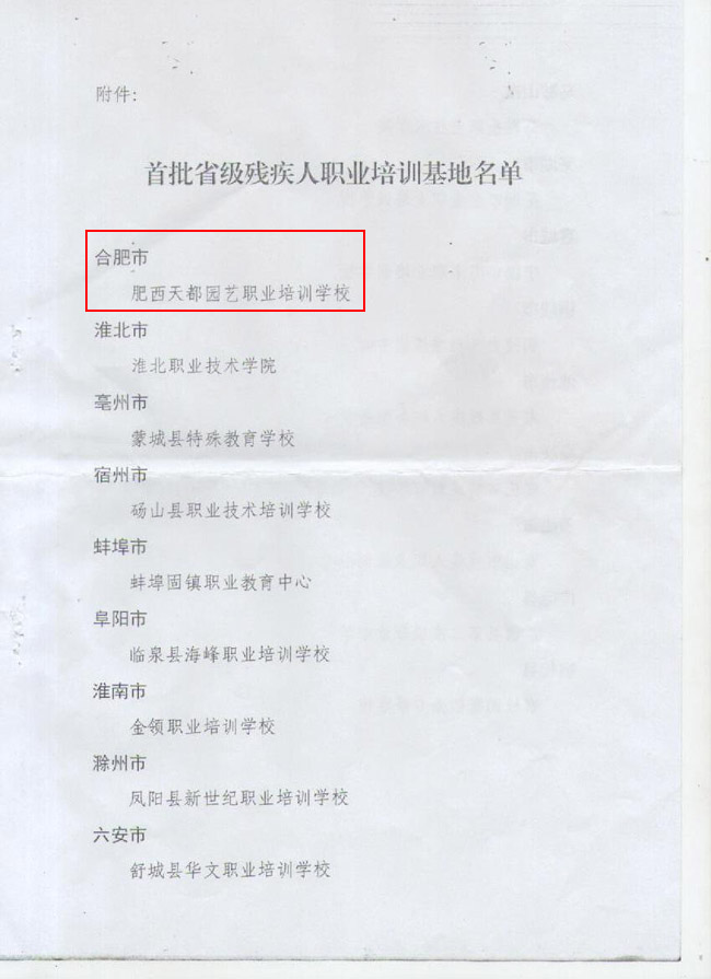 由公司牵头组建的肥西天都园艺职业培训学校被安徽省残疾人联合会评定为首批省级残疾人培训基地。